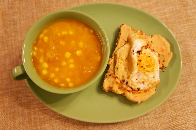 그래서 따뜻한 호박수프와 토스트로 한 끼 해결.