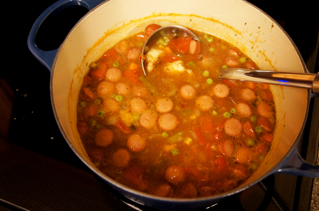 언젠가 검보 시즈닝을 사다놨길래 검보를 한 솥 크게 끓임.