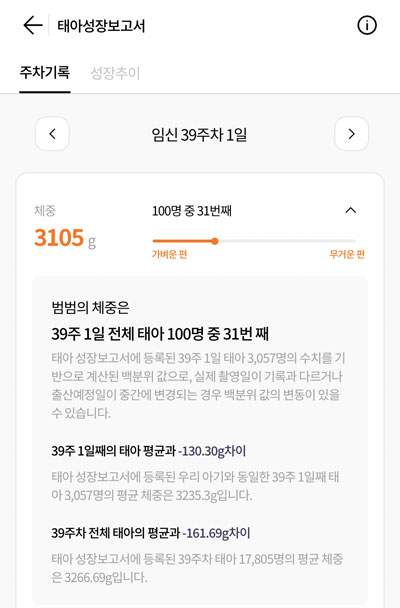 범범이는 이제껏 병원에서 듣던 말과는 전혀 다르게 태어났다. 머리카락도 별로 없고 몸무게도 3.1kg로 생각보다 적게 나갔으며 작고 소듕하게 생긴 것이었다. 39주차 다른 태아들과 비교했을 때 체중이 31%밖에 되지 않았다. 그러니 초음파로 보는 몸무게 너무 믿지 마세용...